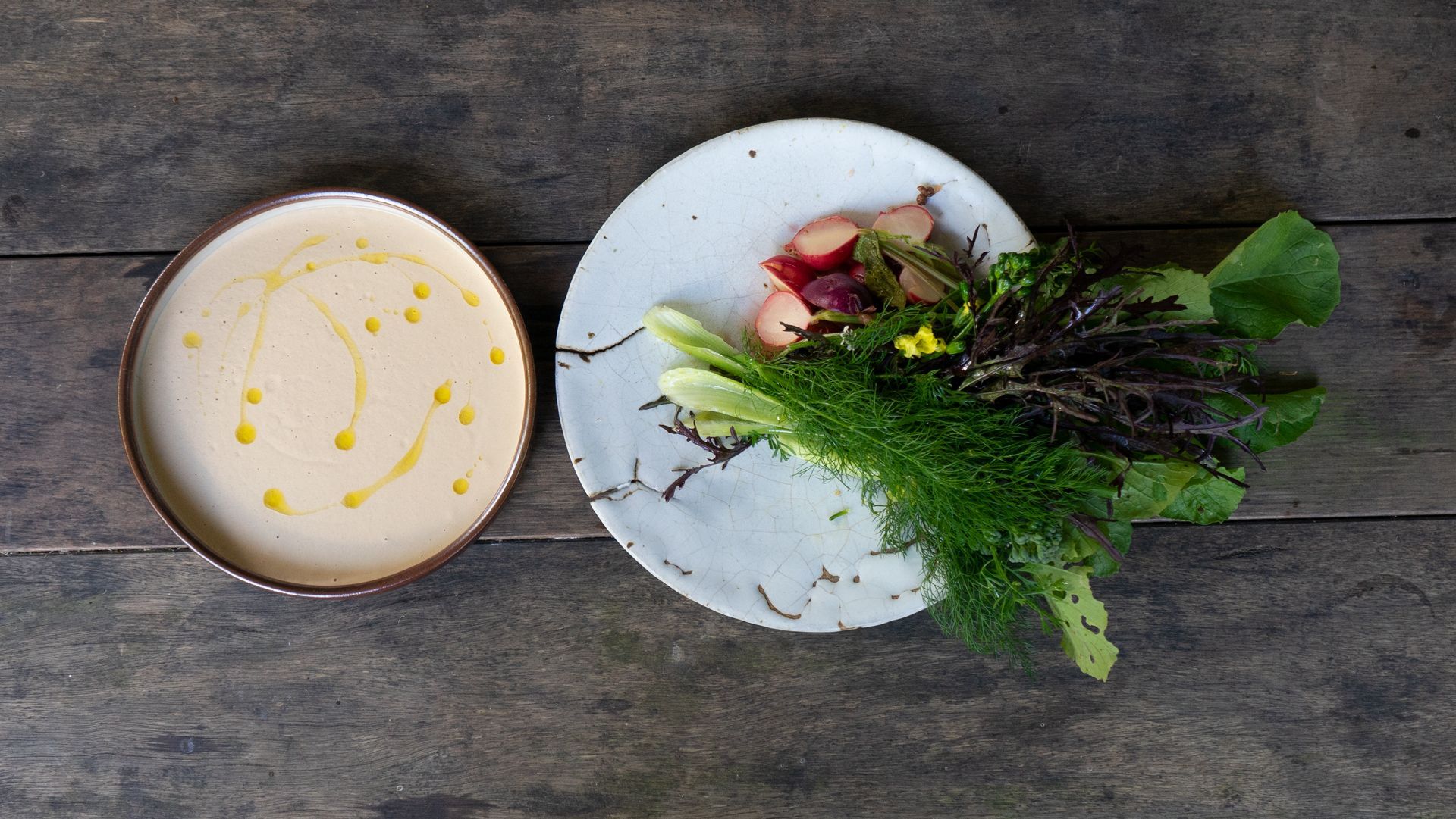 - Place the nut cream in a large bowl, scatter your radishes over the top and drizzle over enough of the sauce to dress the radishes. I like to finish it with a good drizzle of Australian olive oil and season to taste.