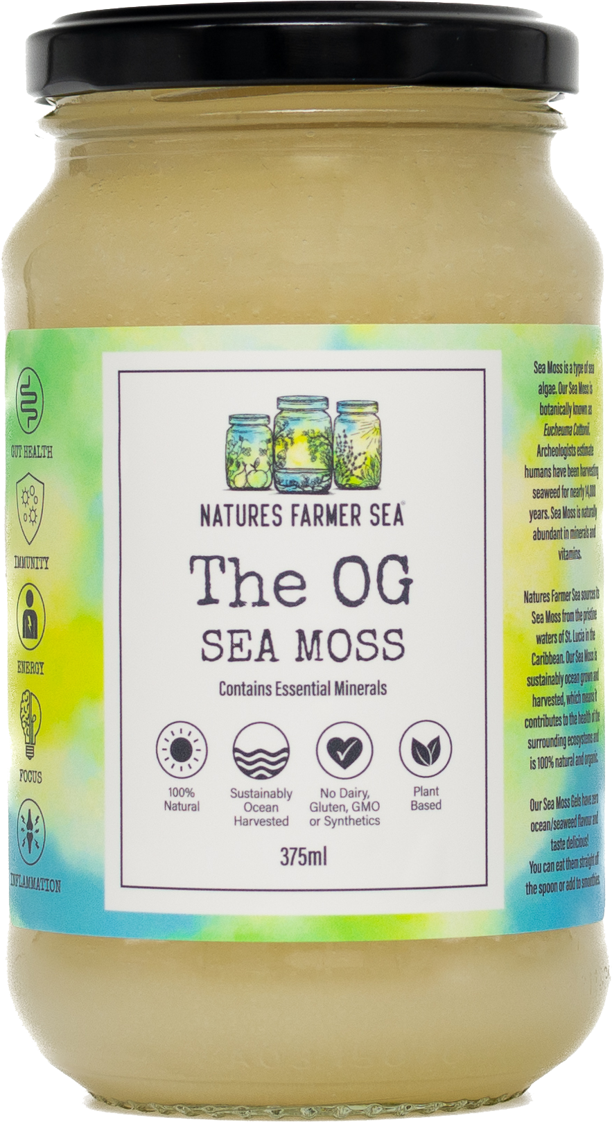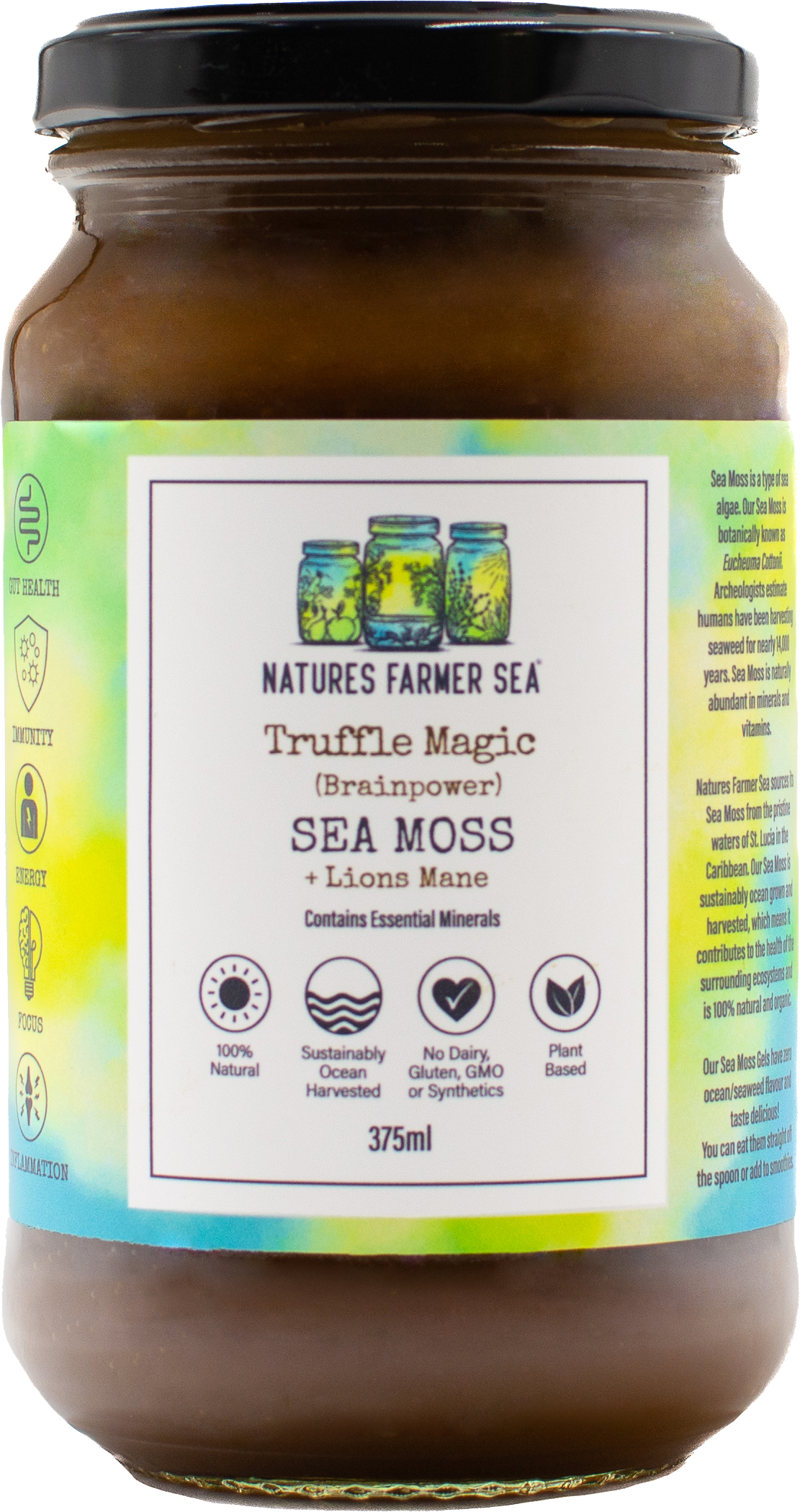 Sea moss is rich in vitamins and minerals such as beta-carotene, vitamin B, vitamin C, sulphur, magnesium, manganese, calcium, phosphorus and zinc. It's also a great source of iodine, which is important for healthy hormone levels and good thyroid function. Additionally, sea moss contains boron, which is essential for brain health, hand-eye coordination, bone growth and maintenance, wound healing, and beneficially impacts the body's use of vitamin D, estrogen, and testosterone.