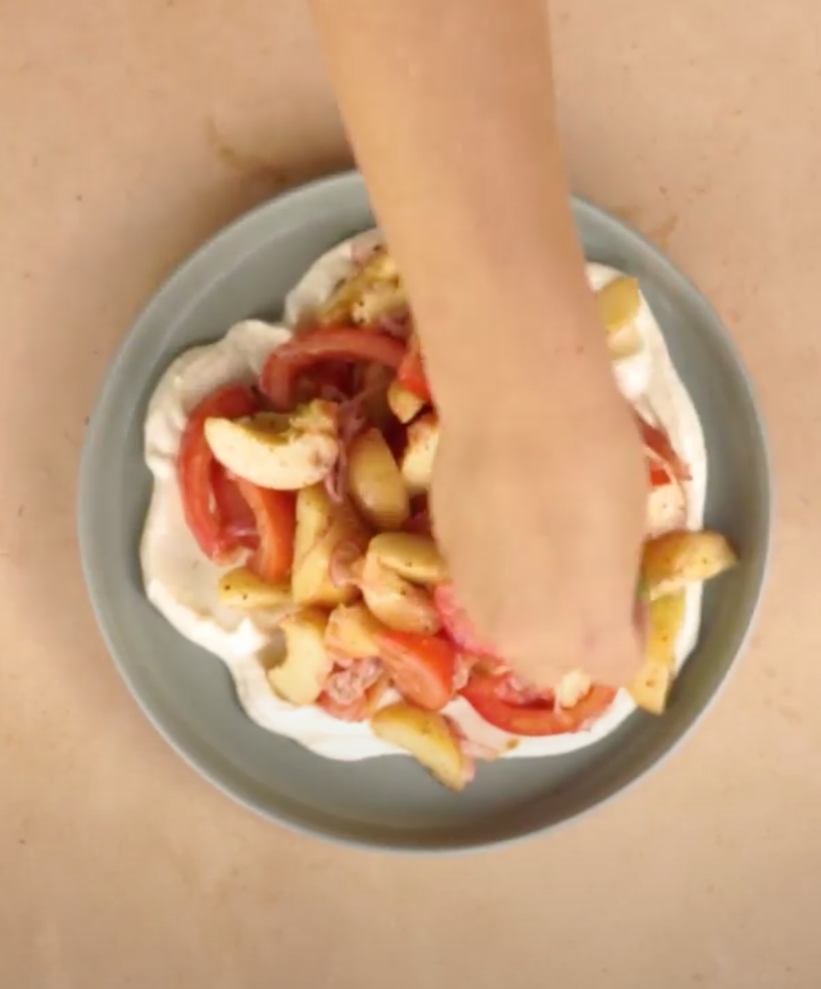 - 2 large heirloom tomatoes, cored and cut into 1-inch wedges